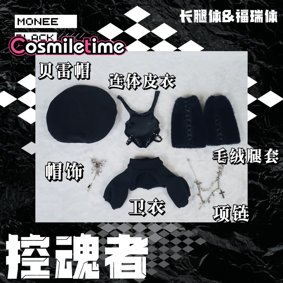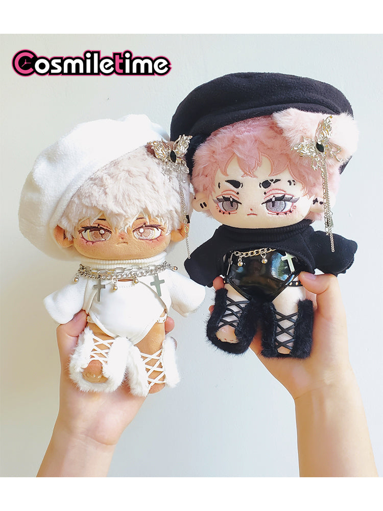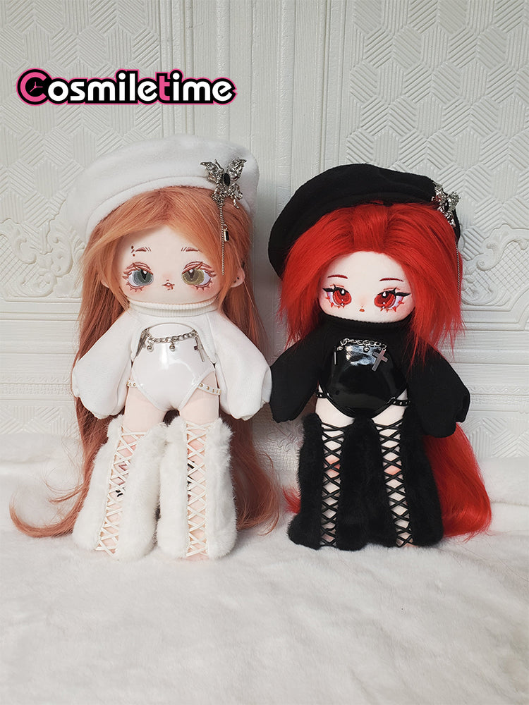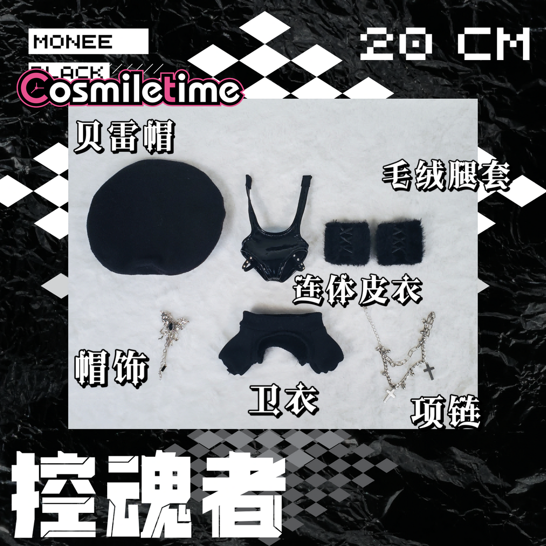 Dress your 20cm Soul Controller plush doll in style with this playful outfit set featuring a one-piece leather coat, matching beret, and chic black-and-white stockings. Designed to add a rock and roll edge, this cool and cute ensemble perfectly complements your doll’s long legs and special furry charm. Mix and match to create unique looks that bring personality and flair to your favorite plush collectible. Whether for display or play, these accessories turn your doll into a true fashion icon.