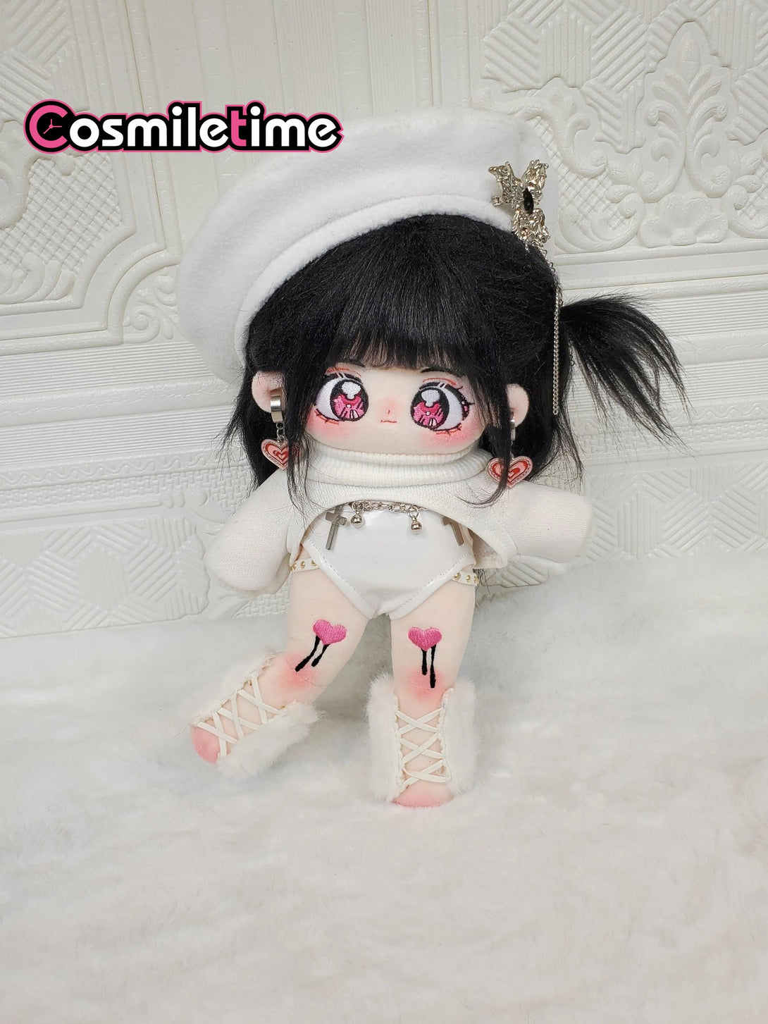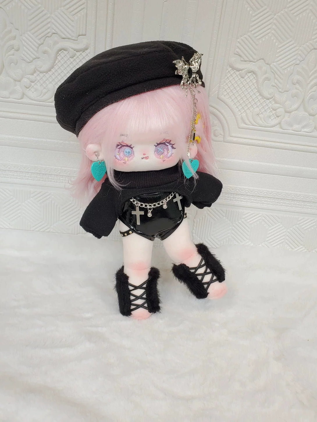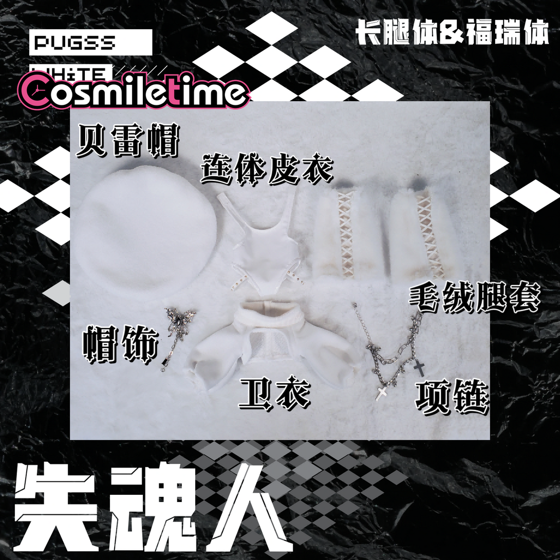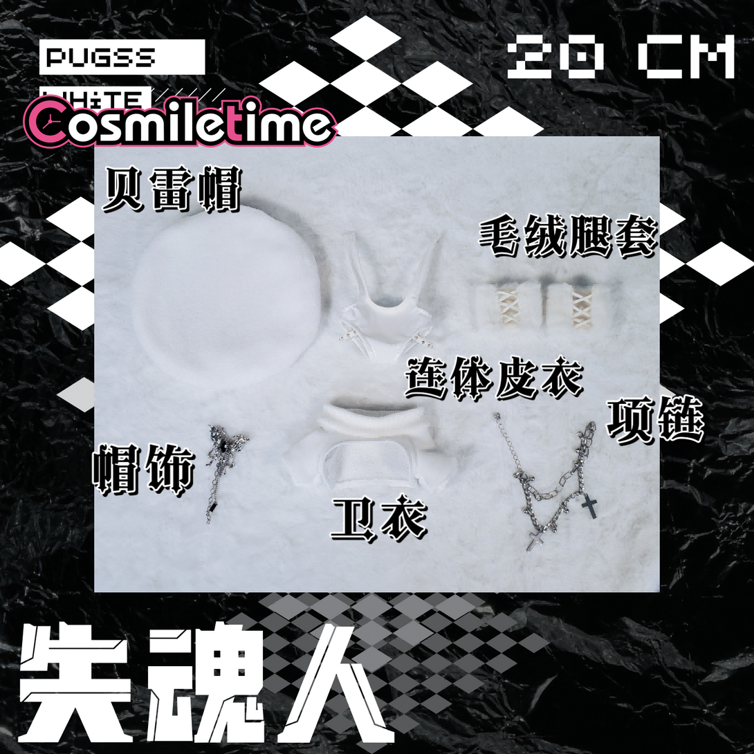 Dress your 20cm Soul Controller plush doll in style with this playful outfit set featuring a one-piece leather coat, matching beret, and chic black-and-white stockings. Designed to add a rock and roll edge, this cool and cute ensemble perfectly complements your doll’s long legs and special furry charm. Mix and match to create unique looks that bring personality and flair to your favorite plush collectible. Whether for display or play, these accessories turn your doll into a true fashion icon.